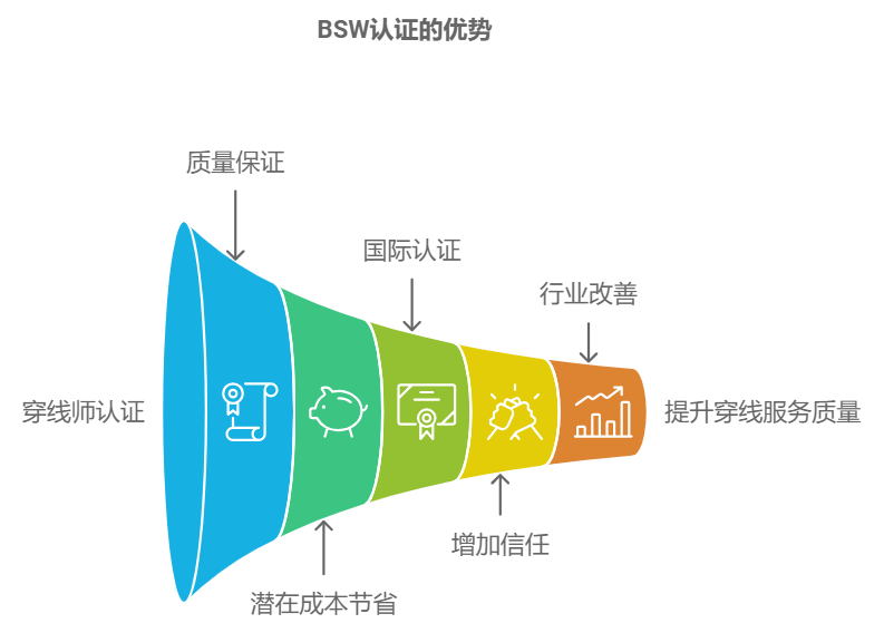 BSW认证有助于整体提高穿线服务水平。认证过程向穿线师展示了他们可以改进的地方,帮助他们学习更多。它还鼓励公平竞争,并有助于提高整个行业的穿线服务质量。