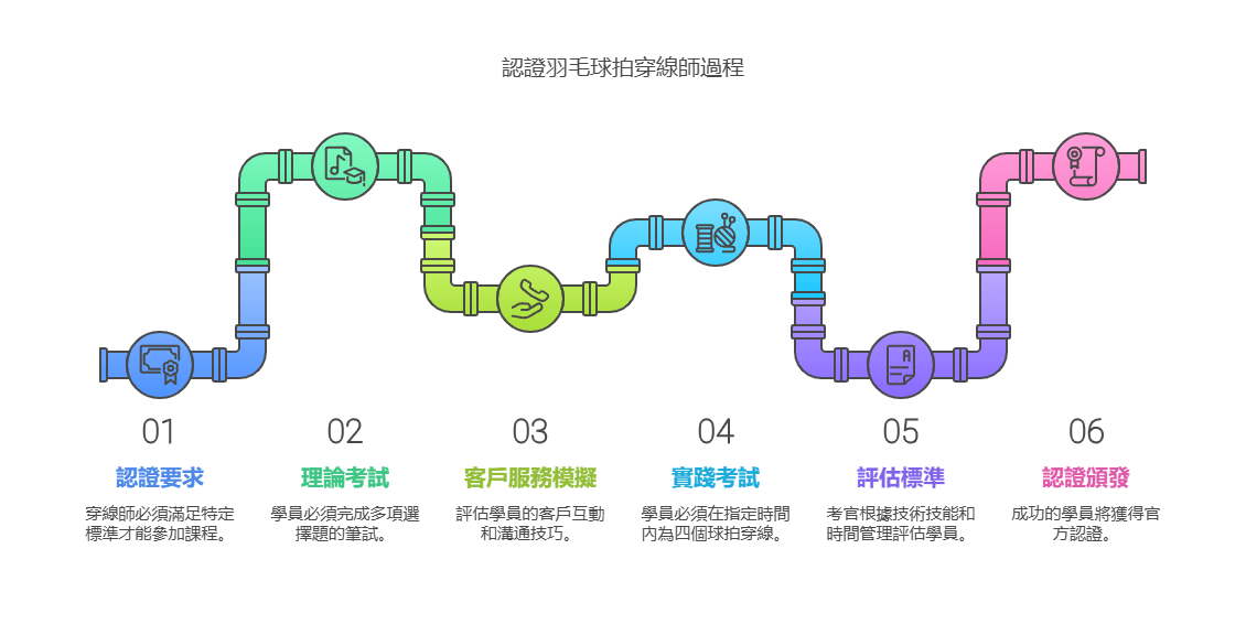 只有滿足這些標準的人才能參加認證羽毛球拍穿線師認證過程。